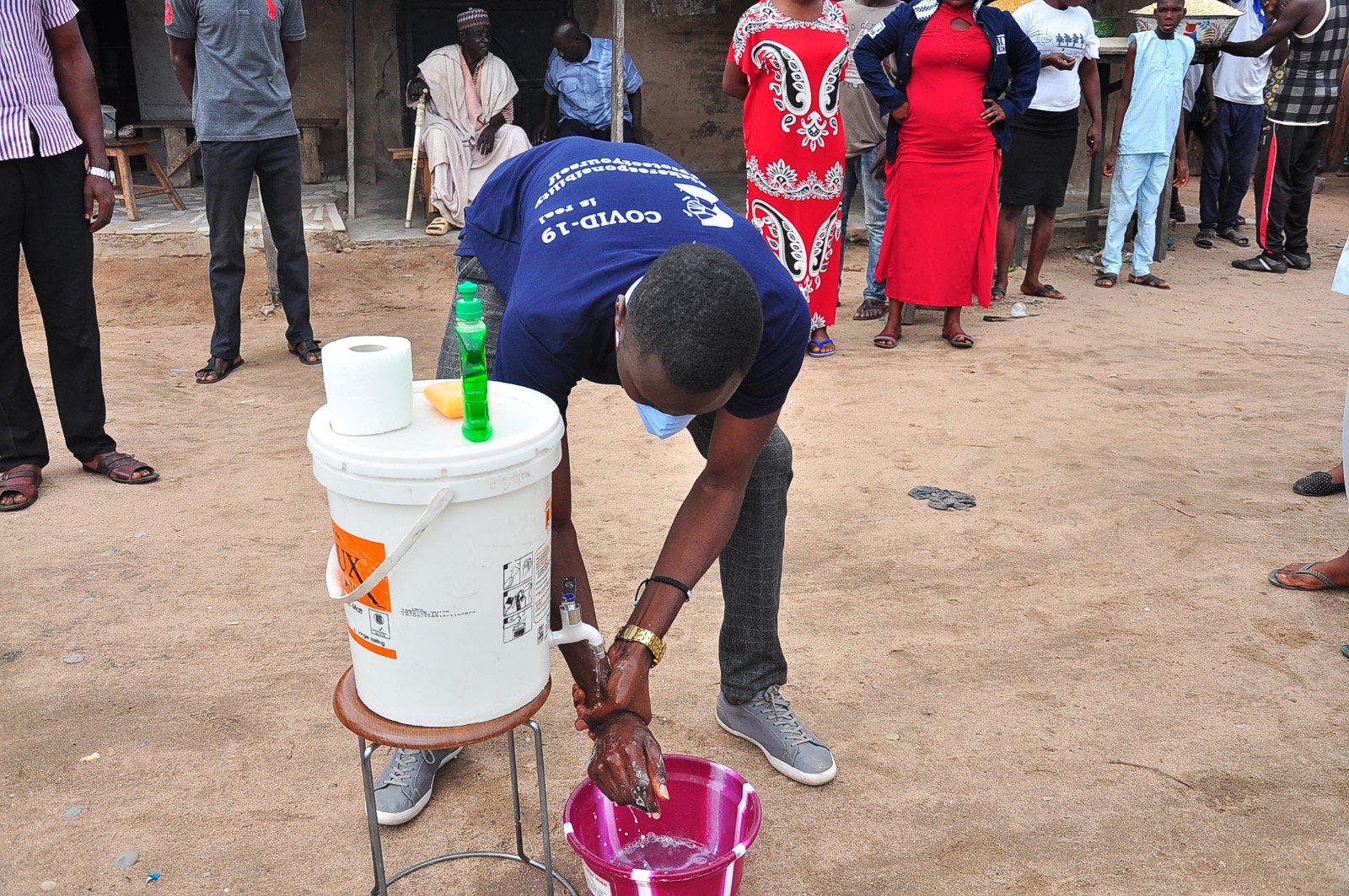 training members of the communities on steps in hand washing, how to wear and safely remove face masks and practical ways of maintaining social distancing